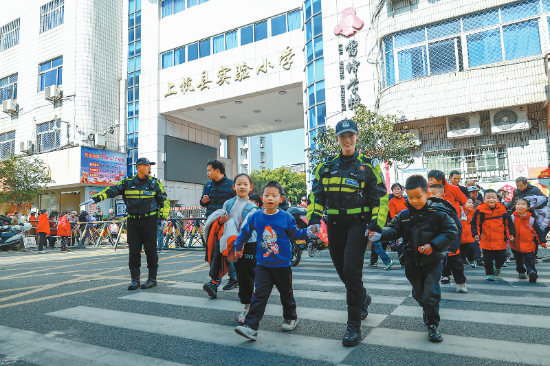 上月27日早上,寒风萧瑟。在上杭县实验小学门口,上杭县公安局交警大队“交警铁骑”巡逻队队员正不停地挥动手臂疏导车辆,在严寒中守护着学生们过马路,他们用责任和担当绘出一幅幅暖心画面。