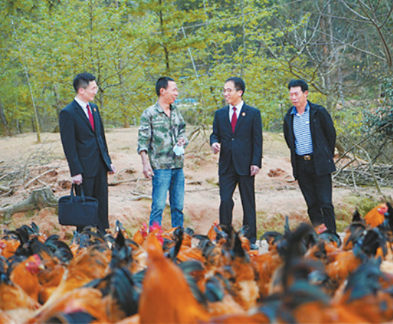 长汀县法院河田法庭积极服务农业产业,全力护航养殖产业健康发展,为辖区河田鸡养殖企业多维度提供司法服务。图为近日,河田法庭法官到河田鸡养殖农场,向农场主了解河田鸡产业发展现状、存在困难并提供法律服务。通讯员 阿烽 黄颖娴 摄