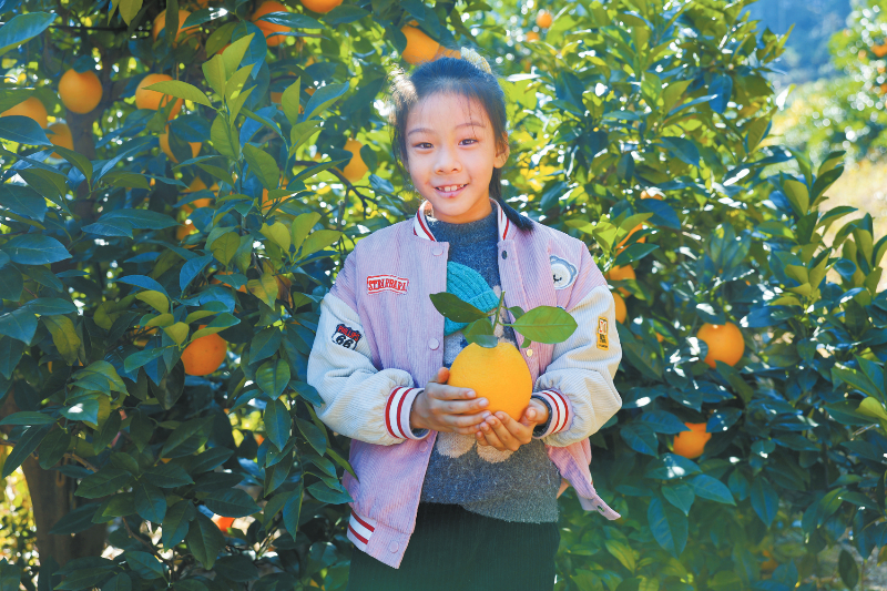 在上杭观音井的一家果园内,摘到大橙子的小朋友十分开心。通讯员 郑献兴 摄
