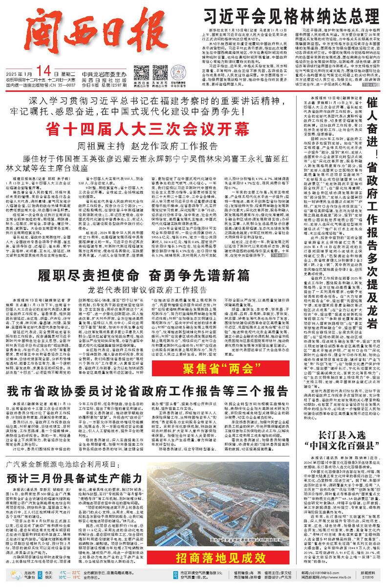 催人奋进!省政府工作报告多次提及龙岩