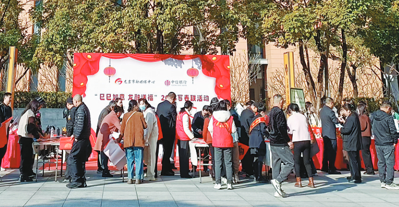 本报讯(融媒体记者 周千炜 许文星 文/图)“龙腾盛世迎春归,蛇舞丰年送福来”“天增岁月人增寿 ,春满乾坤福满门”......一副副散发淡淡墨香、寓意吉祥的春联,一个个饱含神韵的“福”字跃然纸上。“手写的春联福字最有年味!”“写一份春联,送一份祝福”,热情的市民一边有序欣赏、讨论春联的意蕴,一边主动帮着抻对联、晒福字,拿到写满祝福和美好祝愿的春联喜悦之情溢于言表。