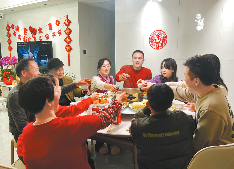 春节到,武平县中赤镇钟福如喜迁新居,一家人欢聚一堂乐享团圆饭。市委、市政府高度重视去年“6·16”破历史极值特大暴雨灾后重建工作,撸起袖子、争分夺秒,高标准高质量推进灾后重建工作,全市586户灾后重建户全部住上了新房,比计划提前了一个月,确保群众过一个温暖祥和的新年。 通讯员 谢思棋 陈文焯 摄