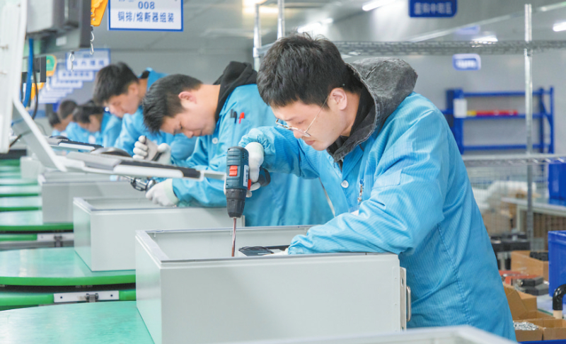 该公司专注于储能及新能源领域核心技术研发与应用,成立于2024年2月,是国网英大产业基金投资的重点项目之一,分两期建设。一期工程建设4条高压箱组装线,二期将布局4条汇控柜组装线,于今年6月开工建设,建成达产后,预计年产量可达10万余台高压箱及5000台汇控柜。其中,第一条生产线已于去年6月开工建设,当月即正式投产。