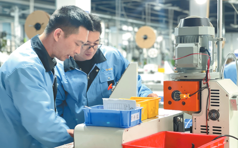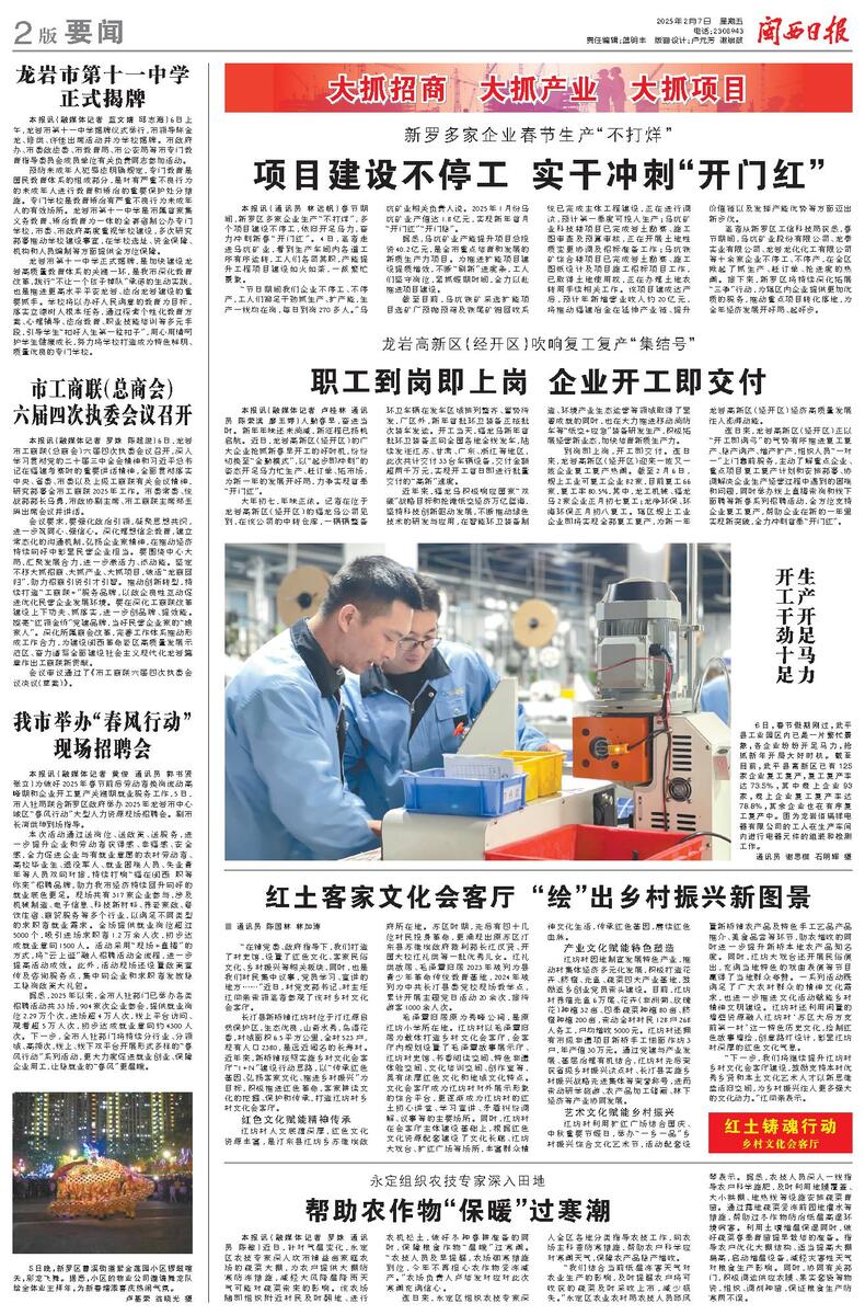 6日,春节假期刚过,武平县工业园区内已是一片繁忙景象,各企业纷纷开足马力,抢抓新年开局大好时机。截至目前,武平县高新区已有125家企业复工复产,复工复产率达 73.5%,其中规上企业93家,规上企业复工复产率达78.8%,其余企业也在有序复工复产中。图为龙岩佰瑞祥电器有限公司的工人在生产车间内进行电器元件的组装和检测工作。通讯员 谢思棋 石明辉 摄