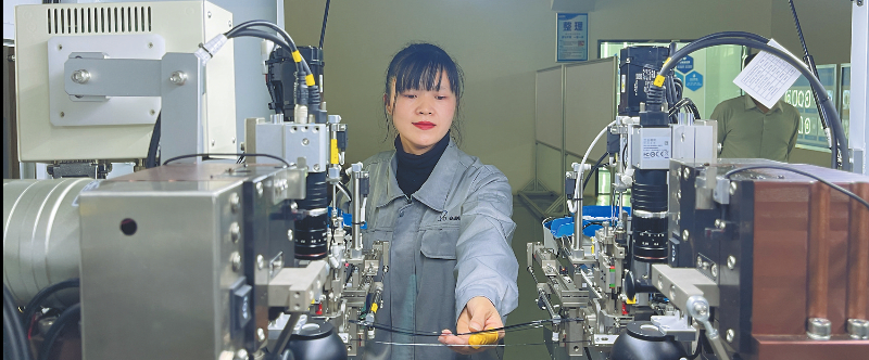 图为工人在智驾转向系统线束生产线上忙碌的场景。
