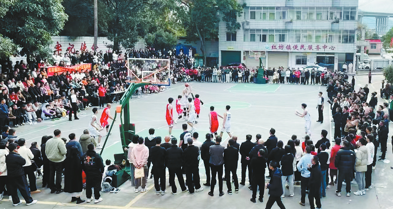 从1月29日持续至2月2日,新罗区红坊镇政府主办2025年新春村级男子篮球联赛。8支篮球代表队16场比赛,不时博得场外观众的阵阵喝彩,营造欢乐喜庆的新春氛围。 通讯员 钟佰炜 摄
