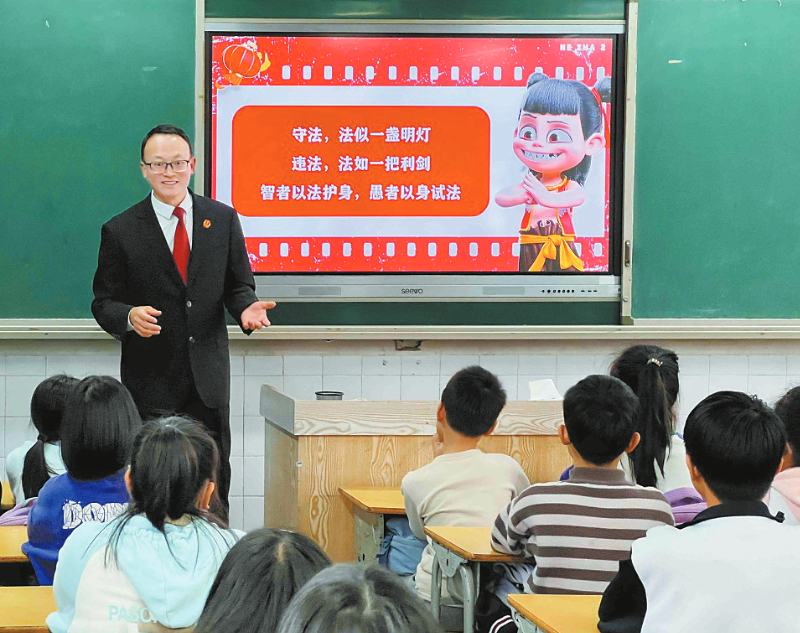 20日,新罗区法院龙门法庭法官以“岩法未你 守护少年的你”为主题,走进石桥小学开展普法进校园法治教育活动,帮助青少年树立法治观念,增强法治意识和自我保护能力,预防未成年违法犯罪,促进青少年健康成长,进一步营造良好的校园法治环境。 通讯员 邱建文 摄