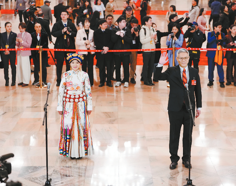 3月5日,第十四届全国人民代表大会第三次会议首场“代表通道”集中采访活动在北京人民大会堂举行。 新华社记者 郑焕松 摄