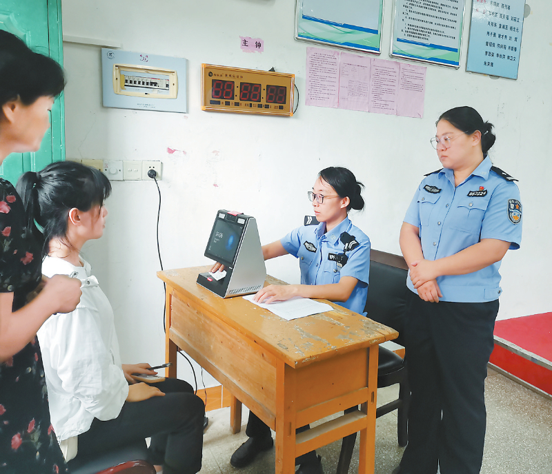 女民警辅警认真为办理驾驶证的群众拍照。