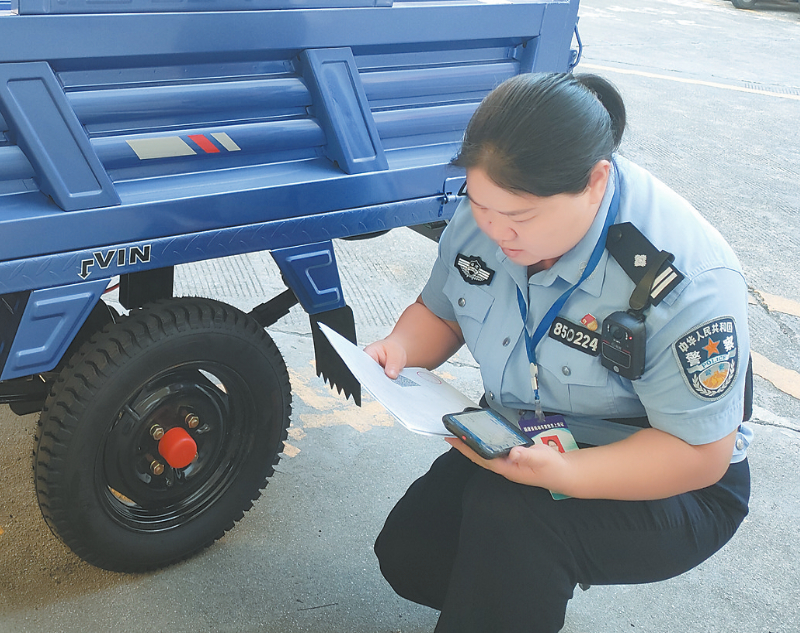 查验车辆是一项需要极致细心的工作,“摸爬滚打”成为她们每天重复的动作。为精准验明车辆“真身”,查验员要钻车底、记参数、拍照片,对车辆的尺寸规格、车架号码、发动机编号等信息进行仔细查验,坚决杜绝“带病车”上路,把牢车辆登记第一道关卡。