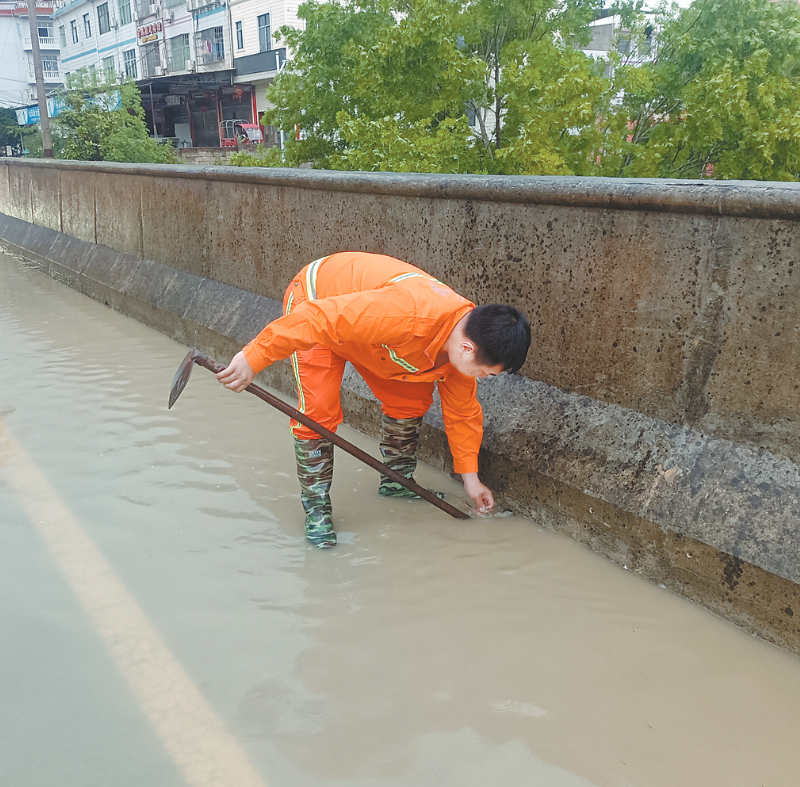 昨日,在G319线南山镇路段,养护人员正疏通路面积水。受突如其来的暴雨影响,辖区国省道部分路段出现路树倒伏、路面积水、边坡溜方等险情,我市公路部门第一时间组织人力机械,争分夺秒处理险情,全力保障道路畅通。
