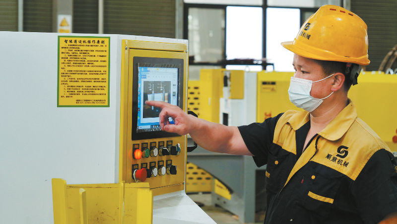 近日,在福建省长汀县顺意机械有限公司生产车间内,工作人员正在生产AI智能清边机等机械产品。该企业是一家专业从事木工机械研制、开发、生产、营销于一体的民营企业,属省级专精特新中小企业,主要产品有AI智能清边机、带锯推台、带锯送材器等。今年该公司投资扩建生产一栋厂房及相应的配套设施项目,投产后预计可新增年产2500台半自动木工机械及配件。通讯员 陈炳林 谢家进 摄