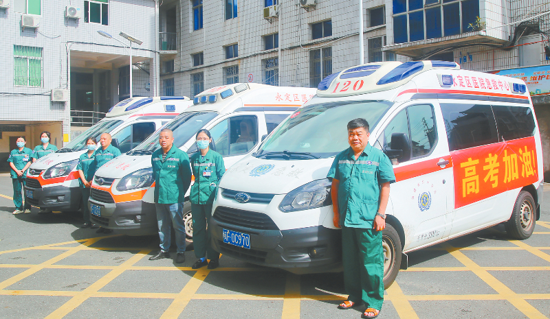 6月5日,永定区医院“高考健康通道”正式启动,以全方位医疗保障助力考生轻装上阵。即日起至高考结束,永定区医院预留专用床位、配置24小时待命专用救护车,并抽调急诊、内科骨干组建应急医疗小组,确保突发疾病考生能在第一时间获得精准救治。 通讯员 熊川 摄