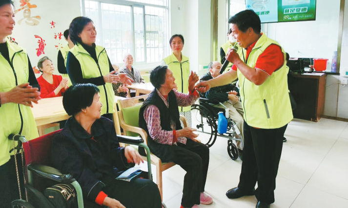 近日,长汀县生命关怀协会志愿者走进新桥镇昌鸿康养院开展“爱心同行 共建美好篇章”合作共建暨安宁陪伴服务活动。志愿者带来了生日蛋糕,面包、粽子、酸奶等慰问品,并为老人贺生日、表演节目、修剪指甲、按摩,陪着他们聊天等,敬老院里处处洋溢着幸福和欢乐的气氛。通讯员 黎寿钦 摄