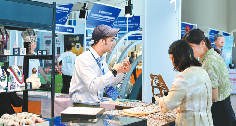 7月18日,与会者在2025上海合作组织国际投资贸易博览会上交流。当日,以“共享新机遇、共谋新发展”为主题的2025上海合作组织国际投资贸易博览会在青岛开幕。 新华社记者 李紫恒 摄