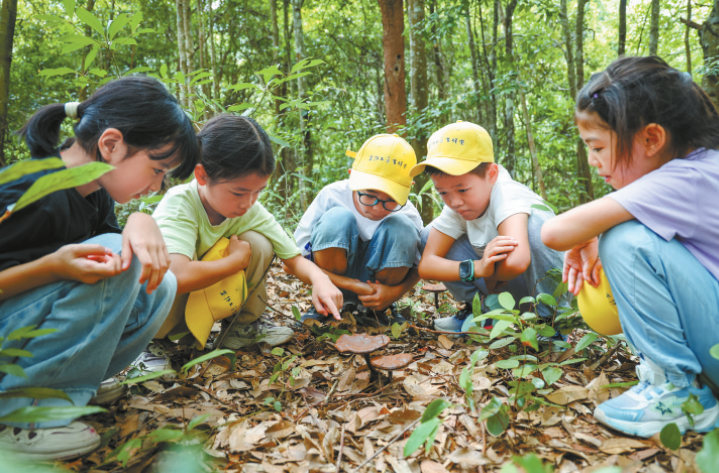7月26日,位于“全国林改策源地”武平县万安镇捷文村的千亩灵芝种植基地,部分研学的孩子认真了解灵芝知识。当天该村举办了第五届中国(武平)紫灵芝产业发展交流活动,吸引了众多游客到场参与。龙媒体记者 方晨颖 赖珊盛 摄