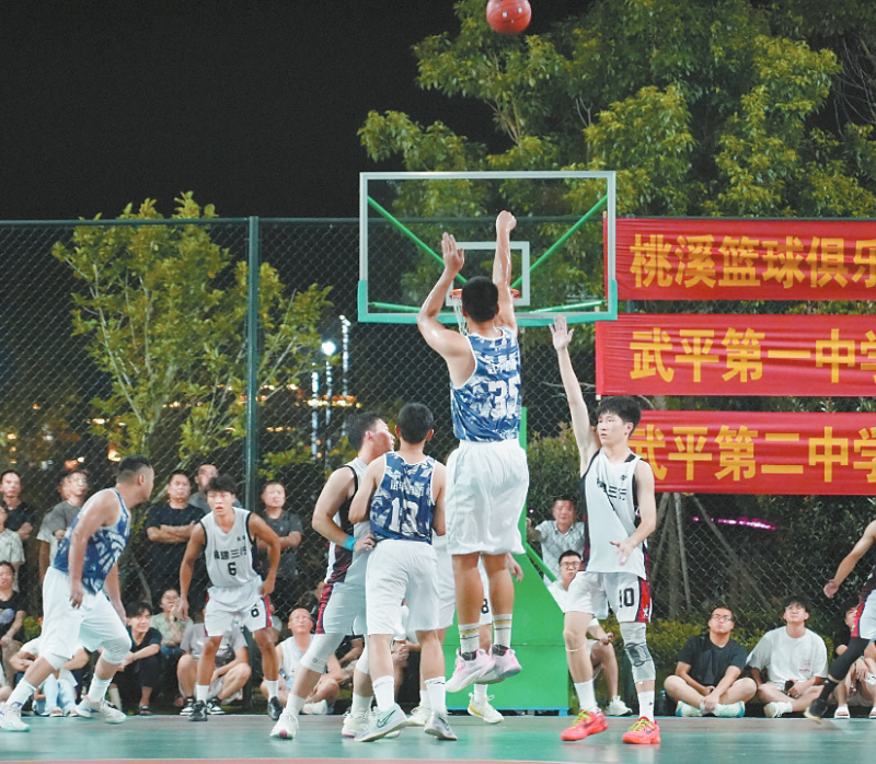 7月18日晚,武平县第三届云豹篮球联赛开幕式在龙河公园篮球场举行。全县的10支队伍参加,代表各自的企业、单位和俱乐部,在为期14天的比赛里争夺荣耀。此次比赛设有精英组和单位组两种类别,各有5支队伍参赛。通讯员 李亚鹏 摄