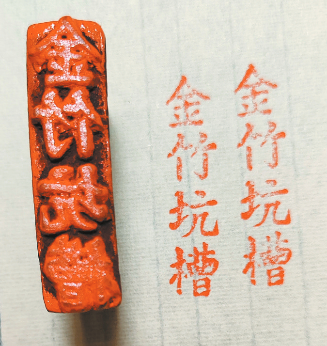 长汀县汀州客家收藏协会副秘书长罗火长珍藏着一枚木印。这是一方典型的民国客家私人纸槽专用印章,扁方形,前宽后窄,长6厘米,宽2厘米。印文内容为“金竹坑槽”四个楷书大字,笔画间还残留着陈年朱砂的印泥。罗火长意味深长地说:“这枚家传印章,是我曾祖父请人定制的,它不但是罗家在金竹坑从事竹纸生产经营的实物证据,也见证了当年汀瑞游击队和苏区革命群众在金竹坑结下的血肉情感......”