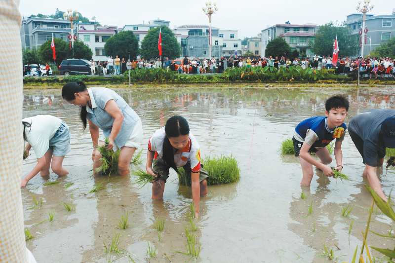 本报讯(通讯员 杨国鑫 张锐畅 文/图)近日,在毛泽东才溪乡调查旧址景区的红军公田里,来自各地的游客在这里开展摸鱼、抓鸭子、插秧等活动。活动现场,人山人海,参与者们纷纷挽起裤腿,踏入齐膝深的稻田,在泥水中体验,感受田园生活的乐趣。
