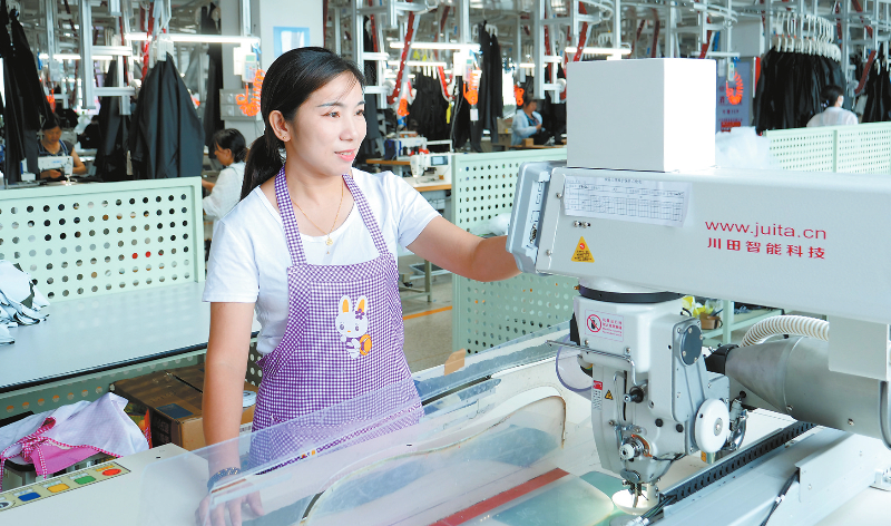 近日,在晋江(长汀)工业园区,福建丽煌纺织科技有限公司的智能缝制生产车间,工人们正忙碌地操作新引进的自动模板机。近年来,该公司积极推进技改升级工作,逐步提升裁剪、缝制、包装、出货等工序的自动化水平,生产效率得到显著提高,去年实现产值7200多万元。通讯员 陈炳林 刘建秋 段长建 摄