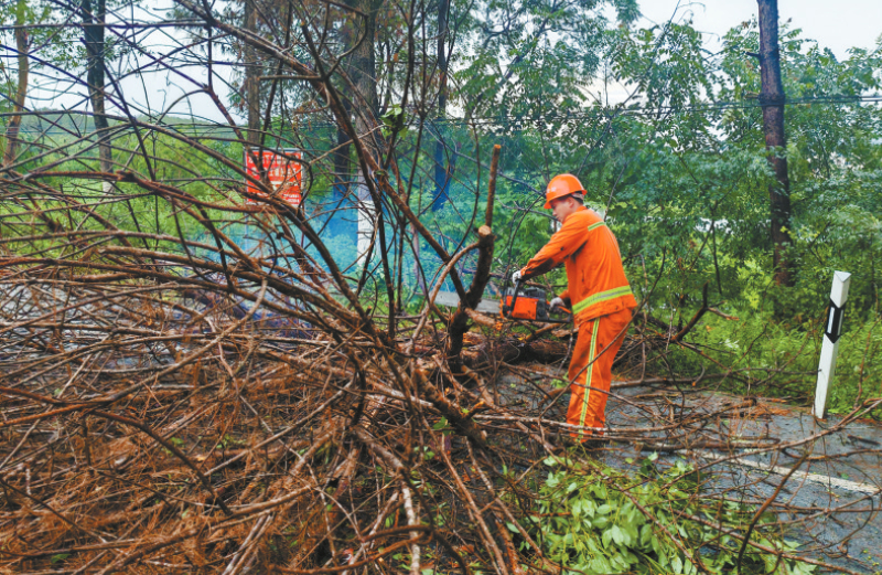 近日,我市公路中心养护人员正在G319线河田路段清理倒伏路树。受强降雨影响,G319线河田路段、G534线馆前路段等地发生路树倒伏,影响道路通行,我市交通部门组织养护人员第一时间奔赴现场处理,全力保障道路安全畅通。