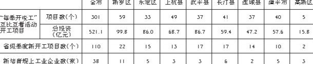 1-7月,全市参加“每季开竣工”互比互看活动开工项目301个、总投资521.1亿元。新培育规上工业企业数38家。