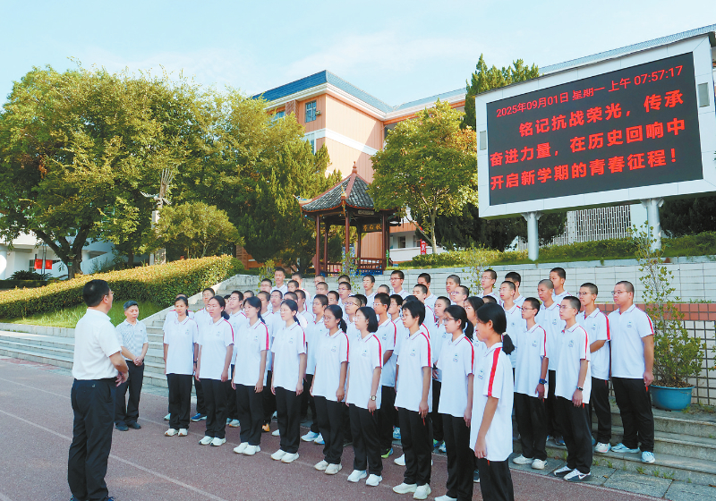 9月1日早上,长汀一中举行2025-2026学年第一学期开学典礼及纪念中国人民抗日战争暨世界反法西斯战争胜利80周年主题思政宣教活动,共同回顾历史、展望未来,为新学期注入澎湃的精神动力。通讯员 陈炳林 谢家进 摄