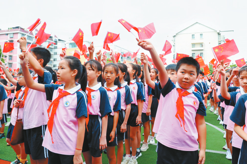 9月1日,龙岩师范附属小学举行2025年秋季开学典礼及纪念中国人民抗日战争暨世界反法西斯战争胜利80周年活动,特邀对越自卫反击战老兵上爱国主义教育课,全校师生手持红旗合唱《我爱你五星红旗》,并放飞和平鸽。 龙媒体记者 谢泽铧 摄