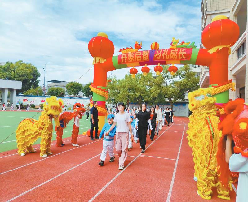 8月28日,连城县第二实验小学一年级新生在老师、家长带领下,经入棂星门、正衣冠、朱砂启智等环节行开笔礼,感受尊师孝亲、崇德立志的中华优秀传统文化。 通讯员 周琦 马彪 摄