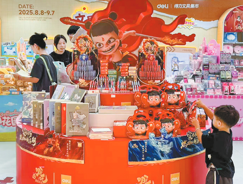 文具集市上与人气IP“哪吒”联名的展台很吸引人。