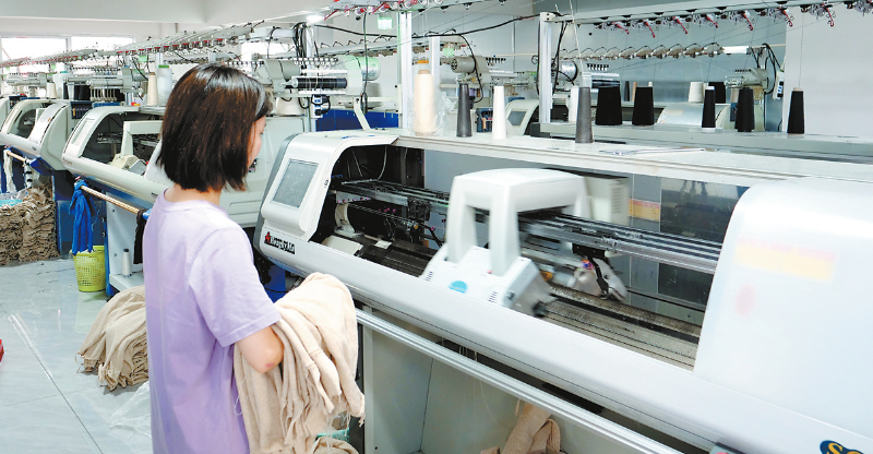 本报讯(通讯员 林加涛 陈炳林 文/图)8日,笔者在长汀云敦高端鞋服设计制造及智能化生产项目现场看到,智能化生产线上,300台智能化电脑针织机、直双机等生产设备正热火朝天运转,60余名工人师傅正在智能化生产线上有条不紊操作,加速赶制订单。