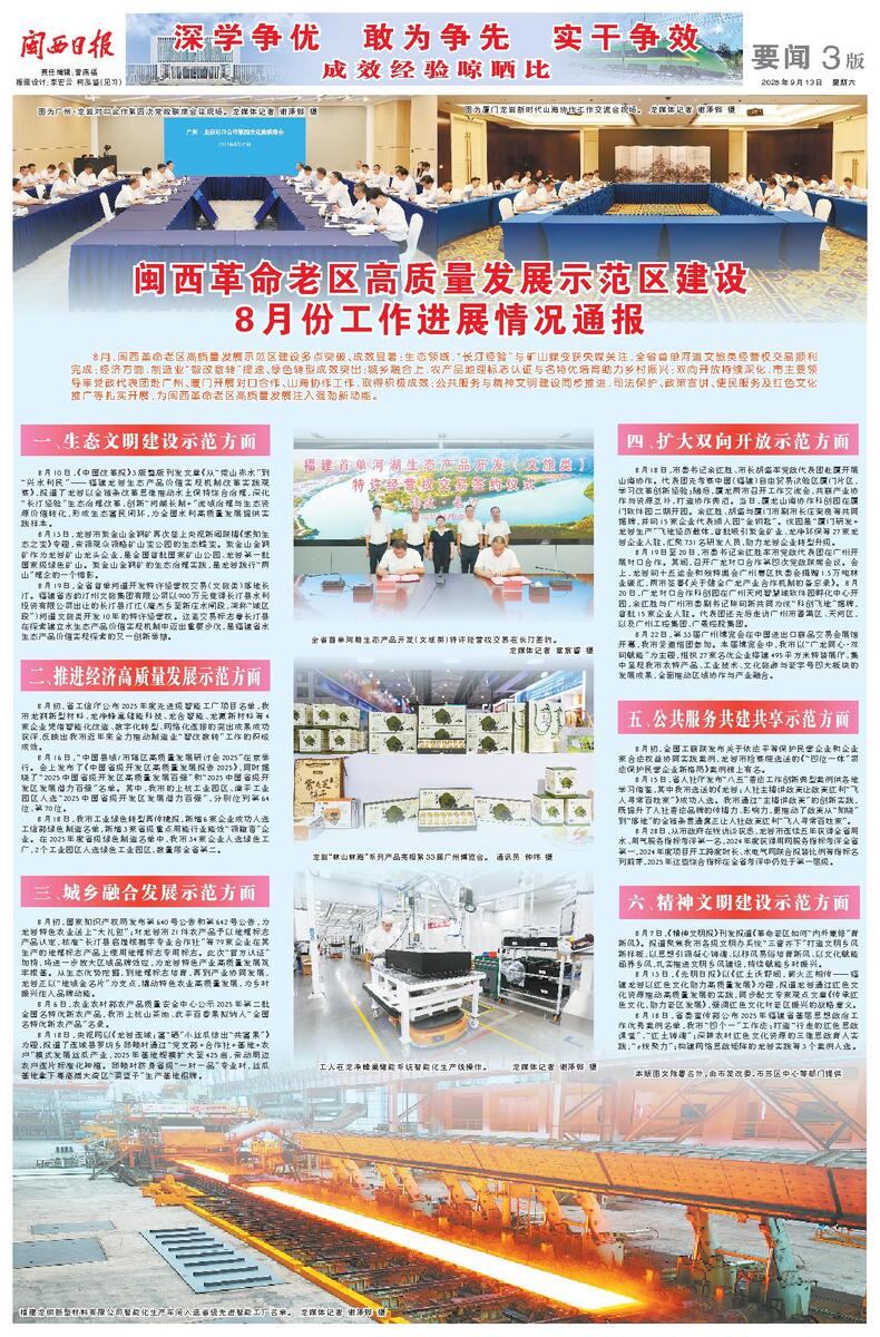 闽西革命老区高质量发展示范区建设8月份工作进展情况通报