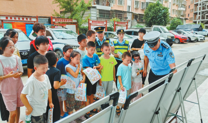 近日,连城县公安局交通管理大队联合县交通运输、辖区派出所等部门分别走进城区15个社区,开展“开学季送交通安全”专项宣传活动。民警带领孩子们一起认识各类交通标志牌,耐心教他们走路、骑车、乘车等基本的交通安全常识。通讯员 张菡珏 吴如纯 摄