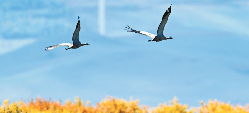 9月16日在额尔古纳湿地自然保护区拍摄的灰鹤。新华社记者 贝赫 摄