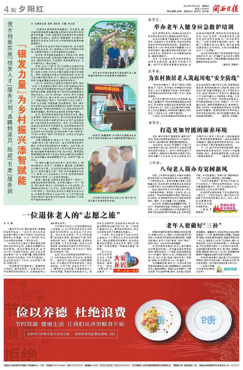 我市创新实施『银发人才 』服务计划,选聘特派员、组建『五老 』服务团