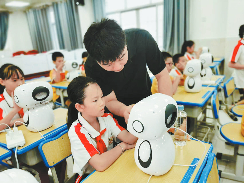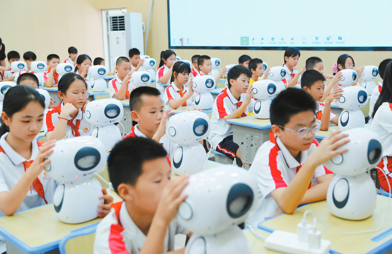 9月17日,上杭县城东小学和城东小学黄竹分校举行“青少年AI”人机互动暨学生心理健康普测,1000多名学生通过AI智能心理测评设备的多模态数据分析,快速生成个体心理状态评估报告,为学校后续针对性心理辅导提供科学依据,实现早期心理健康预警。图为该校学生利用Al设备进行心理健康普测。通讯员 林斯乾 杨国鑫 摄