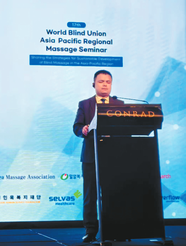近日,记者见到了从韩国参加第17届世界盲人联盟亚太区(WBUAP)盲人按摩研讨会回来的黄榕平。作为福建省唯一学术演讲代表,这位来自龙岩的盲人按摩师,不仅以专业实力打破国际同行对中国盲人按摩的固有认知,更以主动担当搭建起交流桥梁,让“闽西力量”在国际舞台上崭露头角,成为龙岩对外交流的生动缩影。