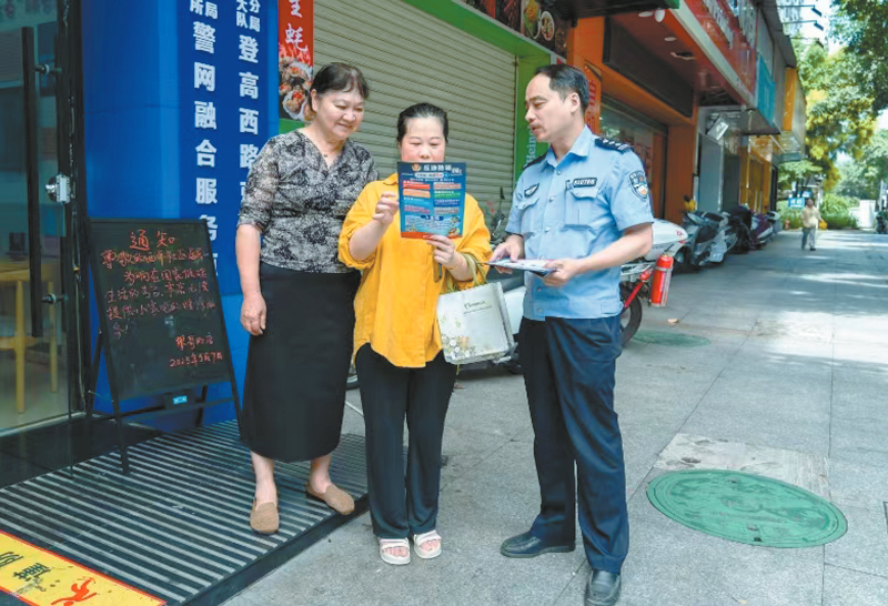 “攀哥的店”虽店面不大,但装修色彩鲜艳,功能一应俱全。店内设有便民服务区、24小时巡警驻守区、心理疏导区和安防器材展示区,为居民提供警务、消防、法律、网络安全等咨询与科普服务,实现“警消安”联动,构建起全方位的安全守护体系。在这里,群众可以找到社区网格员、民警、消防员、人民调解员等基层工作人员,解决各种生活小困难。