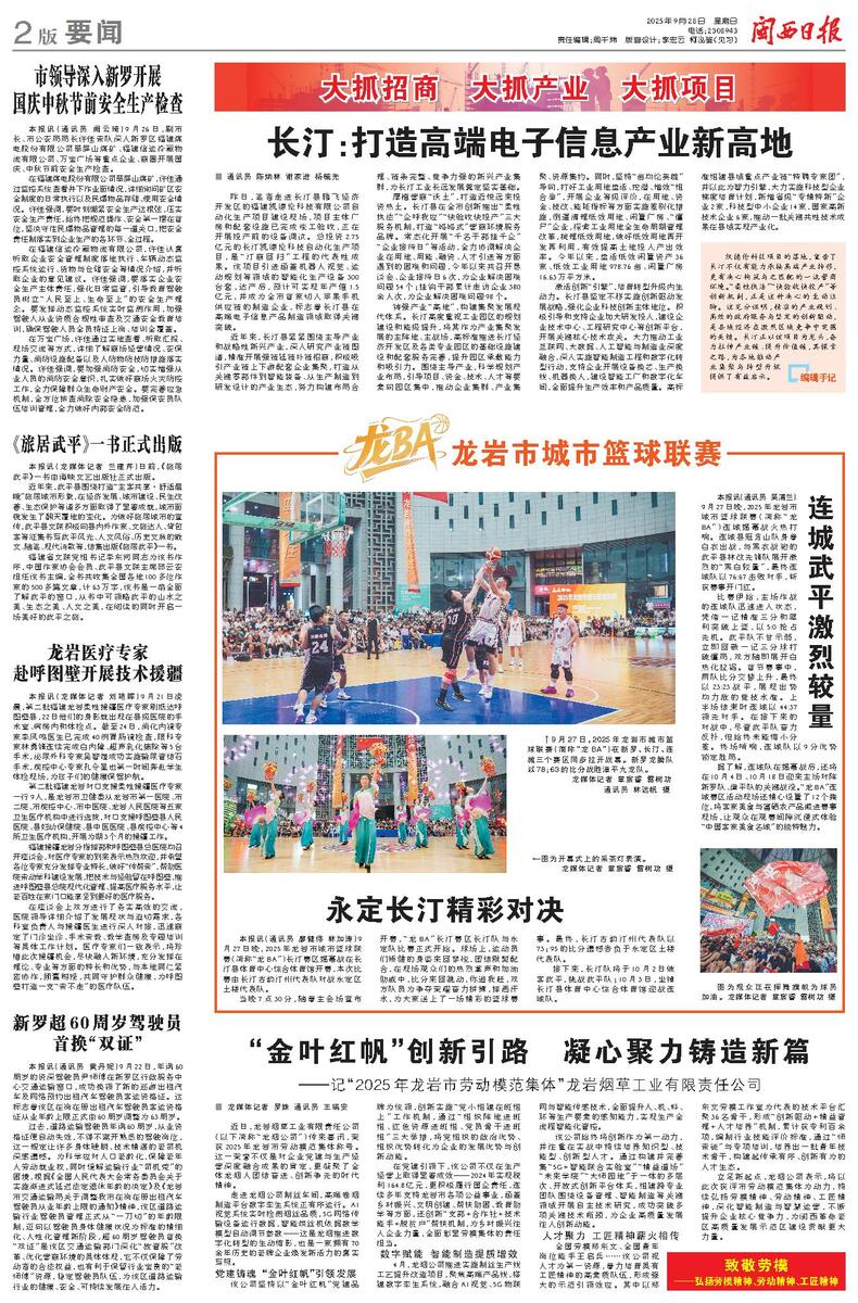 本报讯(通讯员 廖健伟 林加涛)9月27日晚,2025年龙岩市城市篮球联赛(简称“龙BA”)长汀赛区揭幕战在长汀县体育中心综合体育馆开赛,本次比赛由长汀古韵汀州代表队对战永定区土楼代表队。