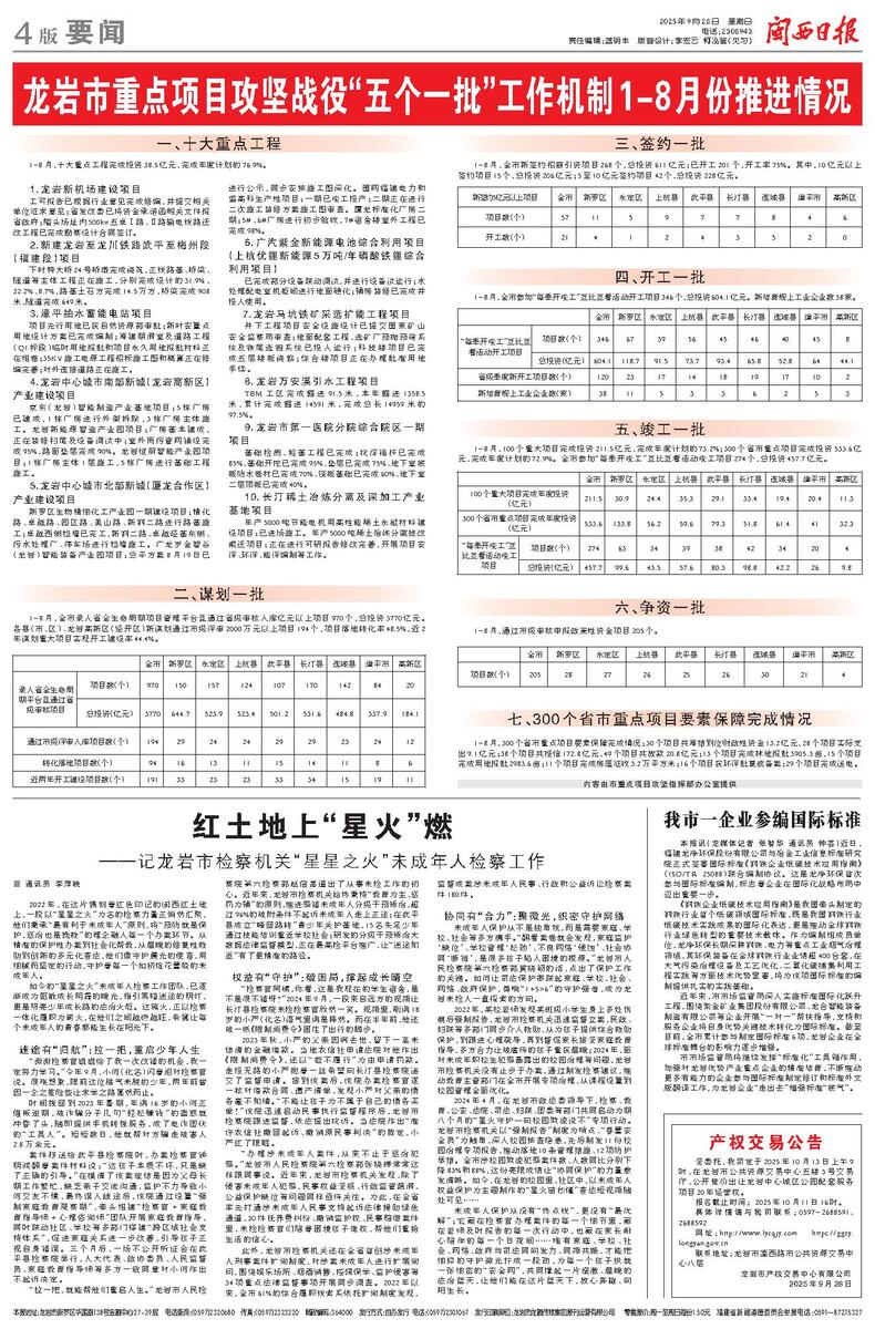 龙岩市重点项目攻坚战役“五个一批”工作机制1-8月份推进情况