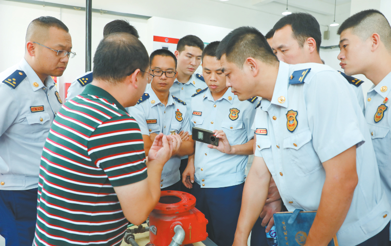 学院与龙岩市消防救援支队深化“消防技能学院”建设,图为全市消防救援支队代表在学院培训。