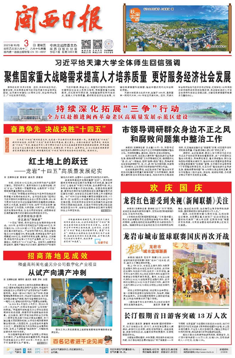 本报讯(通讯员 廖健伟 林加涛)国庆假期第一天,长汀古城店头街、济川门、水东街等各景点人潮涌动,游客们三五成群,或驻足拍照留念,或品尝美食,或参与现场互动,在喜庆祥和的氛围中,乐享假期美好时光。