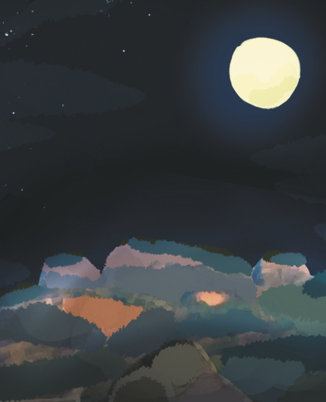 南方的中秋,天黑得慢些。太阳落下光芒后,冠豸山周围的天空泛着淡粉色的霞,山顶的冠豸间一轮还带着霞光的圆月缓缓升起,像是嵌在山尖的一颗明珠。慢慢地,天渐渐暗下来,月儿也升腾着,印在漆蓝的天空上格外耀眼。月光洒在山峦上,月影倒在河水里,圆月与冠豸山,圆月与文川河,三者自然融合,构成了一幅静美又壮阔的画卷,尽显着冠豸山月色的独特之美。