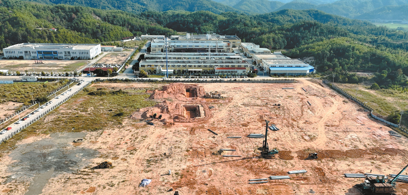 本报讯(通讯员 陈炳林 谢家进 文/图)日前,在福建(龙岩)稀土工业园区的金龙稀土第三代高性能磁性材料数字化智造工厂(5000吨级)项目现场,机器轰鸣,挖掘机、铲车等机械正在进行开挖作业,施工现场一片繁忙。当前,该项目已完成200根静压桩施工,即将完成全部桩基施工,循环水池开挖也已经完成。后续将进行桩基检测、基础施工以及循环水池浇捣。