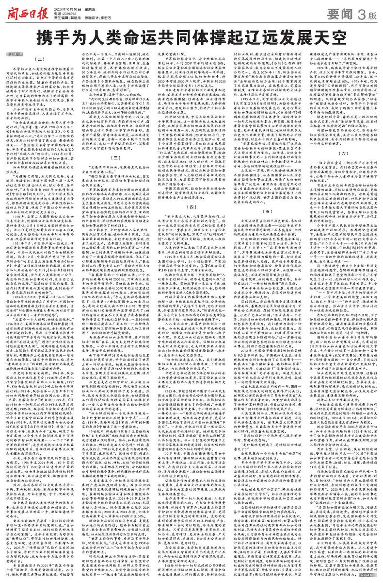 男女平等与妇女全面发展,是现代社会追求公平、释放活力、实现可持续进步的内在要求与核心支撑。
