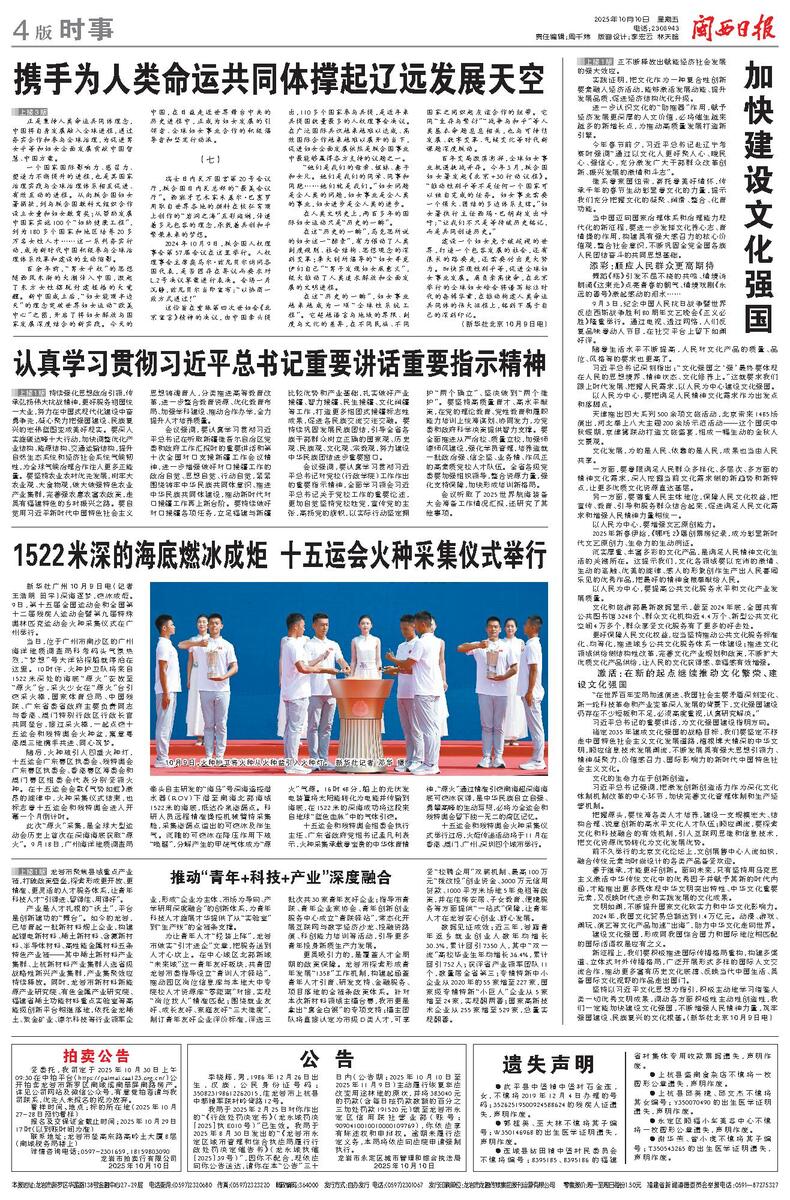 福建日报消息(记者 周琳)10月9日,省委书记周祖翼主持召开省委常委会会议,认真学习习近平总书记在9月29日中央政治局会议,二十届中央政治局第二十二次集体学习,庆祝中华人民共和国成立76周年招待会上,赴新疆出席新疆维吾尔自治区成立70周年庆祝活动、听取新疆维吾尔自治区党委和政府工作汇报时的重要讲话和近期一系列重要指示精神,研究我省贯彻落实措施。