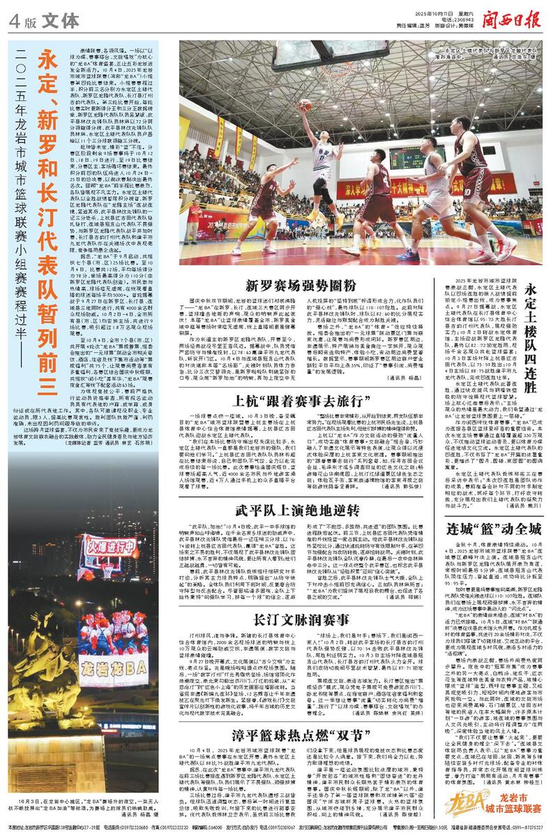 10月4日,2025年龙岩市城市篮球联赛“龙BA”的一场焦点赛事在永定区开赛,最终永定区土楼代表队以88比75战胜漳平市九龙代表队。