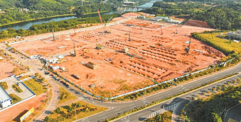 本报讯(通讯员 杨国鑫 张锐畅 文/图)10月9日,位于上杭县南岗金铜新材料循环产业园的上杭环保科技产业园一期项目施工现场,挖掘机、打桩机轰鸣,桩基施工正根据进度节点的要求紧张有序进行,基础施工正同步推进。目前园区桩基施工完成187根,承台开挖完成85个,预计今年12月完成主体结构施工。