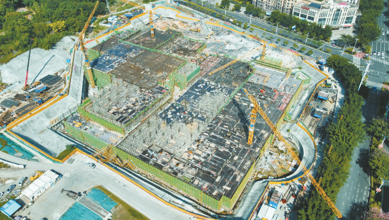 10月15日,龙岩市第一医院分院综合院区一期项目建设现场,塔吊长臂不停运转,工程车穿梭往来。该项目为省、市重点项目,总投资概算约12.9亿元,位于新罗区莲庄南路与天马东路、金鸡中路交叉口西南侧,分三期建设,一期设置床位700张,主要建设门急诊常规用房、医技科室、医疗特殊用房等。目前,项目正在进行地下室和局部地上工程施工。