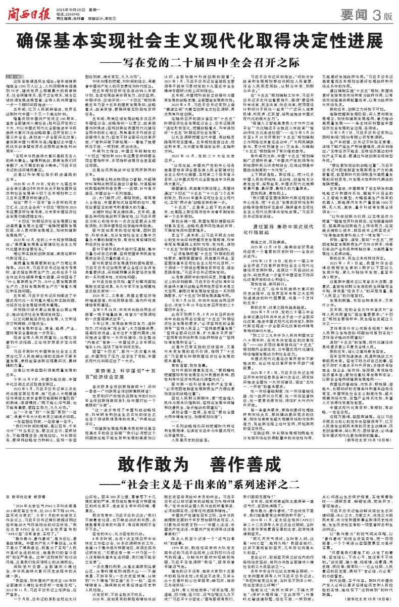 “我们要紧紧围绕新时代新征程党的中心任务,把‘十五五’发展的目标任务和战略举措规划好实施好,确保基本实现社会主义现代化取得决定性进展。”习近平总书记笃定自信。